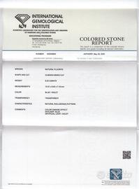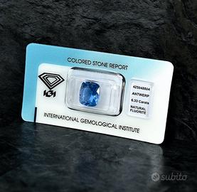 gemma naturale ottimo certificato fluorite 6.33 ct chiusa in blister ed elegante confezione. Cuscino IGI Pietre: Fluorite Peso totale in carati: 6,33 Taglio e forma: Cuscino Certificazione: IGI Colore: Color Changing Trattamento: Non specificato nella relazione Sigillato: Sì Rapporto n.: 425048804 Pietra preziosa: fluorite Dimensioni: 12.01 x 9.93 x 7.19 mm Chiarezza: VVS Trattamento: non menzionato nel rapporto Peso: 6,33 ct Colore: blu / viola Taglio: taglio misto cuscino Certificato incluso Cell 3294124053 spedizione in tutta Italia.