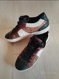 - scarpe stringate basse, in pelle. Plantare estraibile. La parte dorata ha glitter. Marca Geox Numero 36. Perfette, utilizzate 2-3 volte. Praticamente nuove. €13
