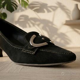 👠 Mocassino/décolleté Geox D6337B da donna, elegante e versatile. 📏 Taglia 38, tacco basso 3 cm. 🖤 Colore nero, pelle scamosciata con cuciture panna e fibbie argentate. 🐄 Tomaia in pelle scamosciata, fodera in pelle, suola sintetica traforata. 🔧 Usate: suole e sopratacchi consumati, lieve polvere sullo scamosciato. ✨ Pronte dopo pulizia e sostituzione sopratacchi. 🔍 Scarpe Geox donna pelle scamosciata tacco basso nero 38. 💬 Scrivimi per info o foto extra! 🚚 Spedizione veloce o ritiro a mano a Burago di Molgora 📍 #Geox #scarpe #donna #décolleté #mocassino #scamosciato #nero #taglia38