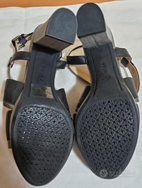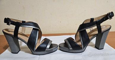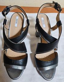 Sandali della Geox, colore nero e profilo argento, taglia 37, nuovi mai utilizzati. Spedizione in 24h, altrimenti consegna a mano.