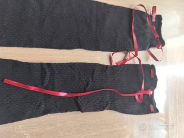 Getry legs LA GATTA .Scaldamuscoli traforati di color nero con fiocco rosso,calze sexy senza piedi.Taglia unica .Nuove senza cartellino.Possibile consegna a mano anche ad Arcore,Monza,Sesto e a Milano