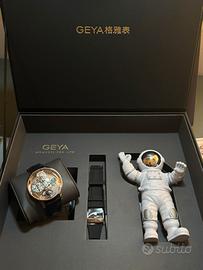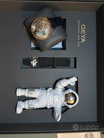 Nuovo, mai usato: un orologio unico della serie Celestial, che fonde ingegneria orologiera all’avanguardia e design ispirato allo spazio. Al centro del quadrante domina il modulo flywheel planetario, un movimento meccanico decorativo con una miniatura della Terra rotante, ingranaggi orbitali multipli e componenti fluttuanti che simulano il moto dei corpi celesti: uno spettacolo ipnotico visibile sul tuo polso.