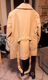 Giacca 3/4 in pelle di vitello pieno fiore colore beige con cintura in vita. Giacca di sartoria artigianale.