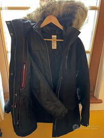 Il parka è composto da una una giacca impermeabile esterna e un piumino termico all'interno, indossabili separatamente oppure insieme, separabili da una cerniera.