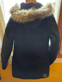 Il cappuccio si puó levare con bottoni a pressione e il pelo si puó togliere con la cerniera.