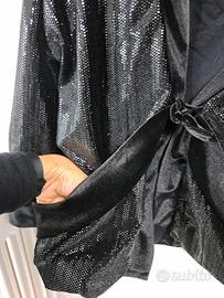 Giacca a kimono nera di velluto e simil paillettes. 10 anni 140 cm. Ottime condizioni, elegante,pari al nuovo, messa davvero poche volte .