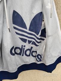 Vendesi splendida giacca a vento (windbreaker) Adidas Originals originale vintage, risalente alla fine degli anni '90 /primi 2000. Un pezzo iconico per gli amanti dello stile retro e della "terrace culture". Caratteristiche Principali: Colore: Viola intenso con iconiche 3 strisce bianche lungo le maniche. Design Reversibile: Il capo può essere indossato su entrambi i lati (double-face), offrendo due look diversi in uno. Dettagli di Culto: Logo Trefoil (trifoglio) ricamato sul petto e fascia elastica inferiore personalizzata con scritte "adidas" e loghi ripetuti. Cappuccio: Dotato di coulisse regolabili. Condizioni: Ottime condizioni, nessun segno di usura, cerniera perfettamente funzionante.Misure Lunghezza (Spalla-Orlo): 68 cm Larghezza (Ascella-Ascella): 54 cm Spalla-Spalla: 46 cm (misura ideale per una M standard Vestibilità: Vintage Boxy Fit Veste perfettamente una Taglia M moderna con il classico taglio anni '90 leggermente corto in vita e comodo sul petto."Lavata e igienizzata: Il capo arriva pronto per essere indossato. Spedizione in 24 h sicura con tracciamento immediato.Adidas Originals Vintage. Disponibile per altre foto e info in privato.