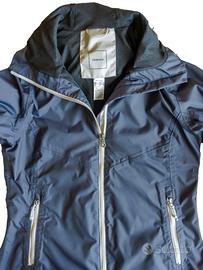 Giacca a vento non imbottita da donna taglia M, a collo alto. Impermeabile, fodera leggera, media traspirabilità e antivento.