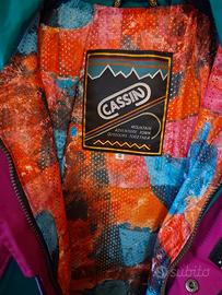 giacca a vento donna multicolor in GORETEX marca CASSIN taglia 44 dotata di cappuccio. diverse tasche esterne e interne, interno con chiusura anti vento regolabile. Indossata pochissime volte e nessun difetto ne' segni di usura. cerniere zip perfettamente funzionanti e scorrevoli. Applicazioni interne in velcro in perfetto stato