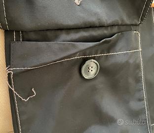 Vendo bellissima giacca a vento FAY, nera, cintura in vita con inserti in pelle e gancio in acciaio (Tg. S, vestibilità 40-42). ORIGINALE, OTTIMO STATO. Piccolo difetto unica scucitura tasca come da foto (assolutamente rimediabile).