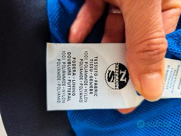 In vendita autentico giubbotto tipo bomber da ragazzo firmato North Sails, color blu navy classico con iconica fascia orizzontale blu reale e logo testuale "NORTH SAILS" in bianco sul petto. Un capo tecnico e di tendenza, perfetto per la mezza stagione. Dettagli Tecnici e Design: Marca: North Sails (Originale) Taglia: 14 Anni (etichetta riporta anche CM 164 - corrisponde a una Taglia S da ragazzo/adulto piccolo). Si prega di verificare le misure se si è in dubbio. Colore: Blu Navy scuro con dettagli Blu Reale e Bianchi. Stile: Bomber sportivo con colletto alto protettivo. Materiali: Esterno 100% Poliammide (Nylon) resistente all'acqua e al vento. Fodera interna in mesh (rete) blu brillante per massima traspirabilità. Caratteristiche: Chiusura a zip intera, bordi a costine (polsini e fondo) con eleganti strisce bianche e blu, tasche laterali con zip a contrasto bianche, taschino sul braccio con patch logo circolare autentico. Condizioni dell'Articolo: Esterno: In ottime condizioni, il tessuto non presenta macchie o strappi visibili. I colori sono vividi e le costine sono ben tese. Interno (Difetto da segnalare): La fodera interna in mesh presenta un piccolo foro (come mostrato nell'ultima foto di dettaglio). Questo difetto è puramente estetico, si trova all'interno della fodera e non pregiudica minimamente l'uso, la vestibilità o l'estetica esterna del giubbotto. È facilmente riparabile con due punti di sutura o lasciato così com'è. Il resto dell'interno e le etichette sono perfetti. Vantaggi: Un capo di marca iconico, molto amato dai ragazzi, a un prezzo competitivo a causa del piccolo difetto interno. Ideale per la scuola, lo sport o il tempo libero.