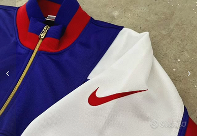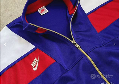 Maglione vintage Nike di una serie limitata, creato esclusivamente per il Giappone, dove il marchio Nike ha sperimentato con stili unici. Questo maglione Nike da uomo in una gamma di blu, rosso e bianco, realizzato in 100% poliestere, dimostra la qualità giapponese, apprezzata in tutto il mondo. Le condizioni praticamente perfette lo rendono una parte significativa della storia Nike degli anni '90, ideale per gli amanti dell'abbigliamento vintage Nike, che sia Nike Air, Nike Force o Nike Air Max.