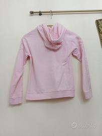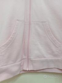 Giacca a vento rosa, con cappuccio e decorazione in pizzo nelle maniche, comoda e versatile, per un uso giornaliero.