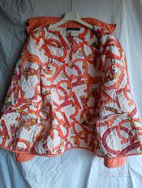 Bellissima giacca a vento di Salvatore Ferragamo, taglia 46 italiana, colore arancione (corallo), fodera a fantasia, tessuto 100% poliestere, bottoni personalizzati con il marchio, Made in Italy, RN 136180843