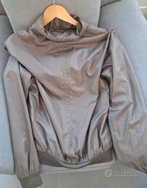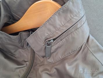 Giubbottino scaccia acqua unisex verde, con cappuccio, usato.