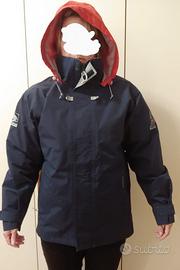 Giacca a vento Tribord (Decathlon) impermeabile tipo cerata con cappuccio fisso chiudibile nel colletto