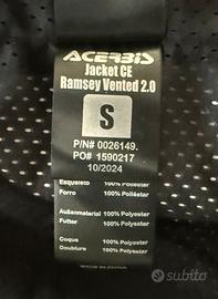 Giacca estiva da moto Acerbis CE Ramsey Vented 2.0 Provata solo una volta, nuova. Taglia S Ottima vestibilità per chi porta una 48/50, come si vede dalle foto. Protezioni spalle e gomiti. Tasca sulla schiena per inserire paraschiena. Vendo per inutilizzo Misure: Vita 51, Torace cm 55 Spalle cm 45