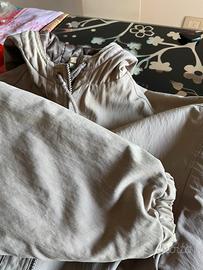 Giacca con cappuccio Adidas colore beige con imbottitura trapuntata buone condizioni i difetti come da doto sono i bordi dei polsi non perfetti e alcuni segni di fili tirati nella fidera interna dietro causati dall etichetta metallica dei pantaloni taglia m ma veste piu grande