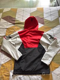 Splendida giacca Adidas in perfetto stato. La giacca ha cappuccio con tesa malleabile regolabile Anche in vita è possibile regolare il giubbino. Ha due tasche con zip funzionanti. Le maniche sono anti vento Ha due stemmi sulle maniche. In ottimo stato come da foto #adidas #adidasvintage #adidasoldschool #adidasoriginal #adidasjacket #adidasvintage90s #adidasvintagejacket
