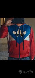 Giacca con cappuccio e zip Adidas Originals color-block rosso/blu del 2011, con iconico Trefoil frontale e zip intera. Prodotta in piena era early-2010s, oggi difficile da trovare. Ottima vestibilità, dettagli autentici e qualità tipica dei capi Adidas di quegli anni. Perfetta per chi cerca un pezzo originale e vintage da collezione o da streetwear. Felpa in buone condizioni ha un paio di micro segni sulla parte della stampa frontale come potete vedere in foto. Tg 42 ma veste come una S, soprattutto come lunghezza bisogna essere alti fra 1,60/70. Regolatevi in base alle misure che sto per darvi. Misura spalle 45, lunghezza felpa 60, misura ascelle 50, lunghezza maniche 50.