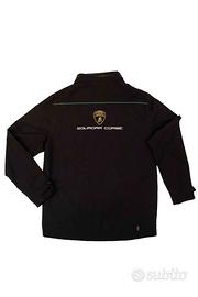 Cappuccio posizionabile all'interno del colletto della giacca. Logo Automobili Lamborghini interno collo e polso destro, Cerniere impermeabili, Loghi sponsor Roger Dubuis, Hankook e Pertamina Fastron sul petto. Scudetto con toro Automobili Lamborghini sul petto e sulla schiena. Unisex