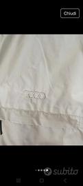 giacca unisex bianca ghiaccio audi taglia M ma veste anche una L. nuova mai messa. Zip tasche e collo alla coreana .