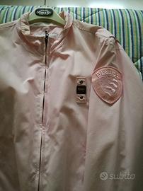 Bomber in nylon tinto in capo, sfoderato Blauer rosa, antivento, leggera, modello primaverile/autunnale, unisex, originale, taglia L, usato ma in ottime condizioni Chiusura centrale con zip Tasca interna, tasche con chiusura a bottone Caratteristico passante Blauer cucito sul petto a sinistra e patch scudo sulla manica sinistra.
