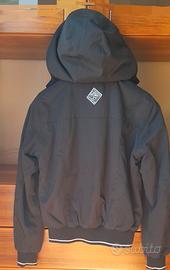 Giacca antivento donna,marca TUCANO URBANO, taglia EU 40, caldo dentro in pile grigio,antivento, antipioggia,colore Blu scuro,morbido e comodo nei movimenti,con cappuccio amovibile attraverso una cerniera,due comode tasche interne,usato poche volte,come nuovo.