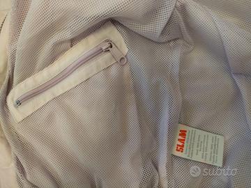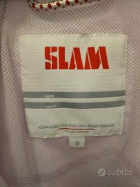 Giacca antivento Slam originale, colore rosa, taglia 42/44, polsini elasticizzati e regolabili con velcro, strisce di materiale gommoso sul bordo del giubbino per una maggior aderenza, tasca interna con cerniera.