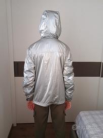 Colorazione argento brillante, taglia XS. Zip nera. Con allacciature particolari sulle maniche. Per altre foto contattatemi, rispondo quasi immediatamente.