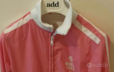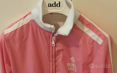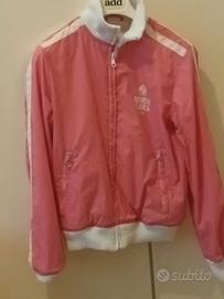 Perfetta per un look sportivo e casual. Colore rosa con dettagli bianchi Zip frontale e tasche laterali Taglia S lunghezza spalle 42 cm lunghezza manica 60 cm