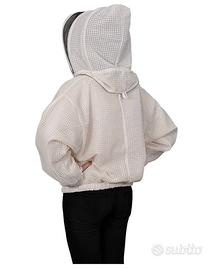 Giacca in polycotone per apicoltura, con cappello maschera rotonda con sostegno autonomo, robuste cerniere in ottone, tasche resistenti con doppie cuciture, ripiegabile in una elegante custodia in tela personalizzata