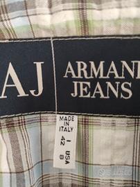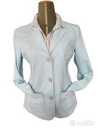 Bellissima giacca primavera Armani jeans, colore carta da zucchero, 2 comode tasche, in puro cotone, con fodera interna, tg 42, manifattura italiana, ottime condizioni, presenta un lieve alone dietro il collo invisibile da indossata