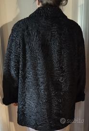 Elegante pelliccia in Astrakan pelliccia di pecora nera originaria dell'Asia centrale pelo nero intenso e lucido modello vintage usata pochissimo non ha imperfezioni
