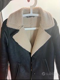 Giacca ZARA originale, modello aviator, unisex, in ecopelle nera con interno in sherpa color panna, ideale per la stagione autunno/inverno.