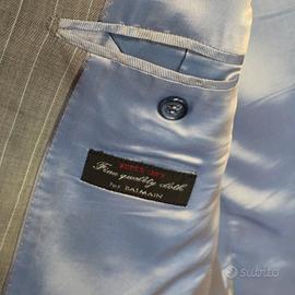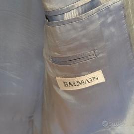 Vendo giacca Balmain grigio cbiaro gessato fine azzurro taglia 52 con fodera a contrasto 100% lana