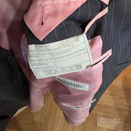 Vendo giacca Balmain grigio gessato rosa, fodera rosa a contrasto taglia 52