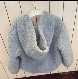 Morbida giacca azzurra con cappuccio, perfetta per le giornate più fresche. - Tessuto in peluche. - Chiusura con zip. - Dettaglio ricamato con corona.