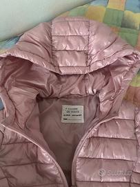 Piumino bambina 8/9 anni rosa mezza stagione con cappuccio.