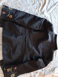 giacca nera in pura seta,ricamata su collo e polsi.Ottima vestibilità, dietro sfiancata.Acquistata direttamente ad Hong Kong anni fa,ma praticamente usata 2 volte.