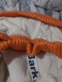 Giacca Bark originale, unisex taglia 14 anni, arancione con interno in pellicciotto, cappuccio rimovibile, alamari e clip, tasche. Ottimo stato