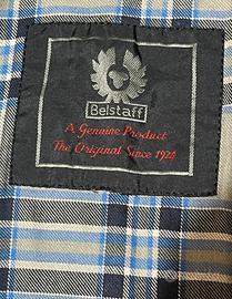 Giacca da motociclista Belstaff in Denim, colore grigio scuro/nero, taglia S/M , con cintura.