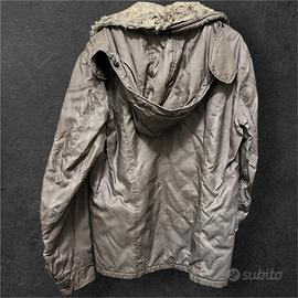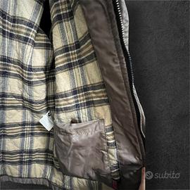 Bellissima giacca Belstaff originale, linea Gold Label. Un classico intramontabile che unisce lo stile iconico del brand britannico a una grande funzionalità. Il capo è caratterizzato da un esterno in nylon tecnico resistente e un interno caldo con la tipica fodera a quadri (tartan). Caratteristiche principali: • Colore: Marrone fango / Grigio fumo (tonalità molto versatile). • Cappuccio: Ampio, foderato in pelliccia sintetica e removibile (o regolabile). • Dettagli: Chiusura con zip robusta e bottoni a pressione, patch Belstaff ricamata sulla manica sinistra. • Tasche: Multi-tasche frontali funzionali e comoda tasca interna. • Materiali: Esterno 100% Nylon; Fodera interna 100% Cotone (molto confortevole). • Produzione: Prodotta in Italia da Clothing Company SPA. Condizioni e Vestibilità: • Taglia: M (vestibilità regolare Belstaff). • Stato: Ottime condizioni generali. Il tessuto presenta le naturali e affascinanti sfumature tipiche del materiale tecnico Belstaff, che ne esaltano l'aspetto vintage/urban. • Pulizia: Il capo è pulito e pronto per essere indossato.