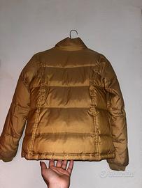 Vendo questa giacca invernale, tonalitá dorata, firmata Benetton. Cerniera coperta. Scritta Benetton in pailettes oro. Collo alto.