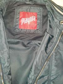 Giubbino blu "Playlife" tessuto poliestere , modello sciancrato con cerniera, 2 tasche con cerniera. Usato pochissimo.