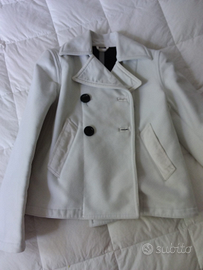 Vendo giacca donna, taglia M, doppiopetto bianca con bottoni neri, due tasche, martingala con bottoni neri, realizzata in tessuto antipioggia