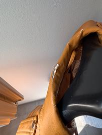 Giacca stile chiodo color senape/ocra firmata Kiabi 🧥 Colore molto bello e di tendenza, ideale per dare un tocco vivace all'outfit. Modello con dettagli silver e zip perfettamente funzionanti. ⚠️ IMPORTANTE: La giacca presenta un evidente difetto di usura sul colletto (si sta spellando, vedi bene l’ultima foto). Il resto della giacca è intatto. Prezzo basso per questo motivo, ideale per chi vuole recuperarla o non è infastidito dal difetto 🔧✨ • Marca: Kiabi • Taglia: 50 (IT) • Colore: Senape 🏷️ • Materiale: Similpelle 🧥