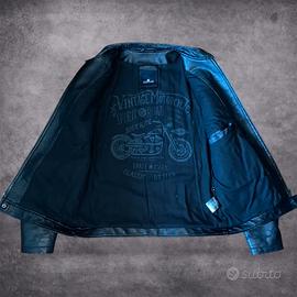 Vendo giacca biker nera taglia M marca Adimari, stile moto jacket in simil pelle. Capo in buone condizioni generali, zip perfettamente funzionanti e interno in ottimo stato. Presenta un segno di usura sul fondo della manica come visibile in foto, non compromette l’uso e altri normali segni di utilizzo. Vestibilità regolare, modello aderente stile biker. Ottima per outfit casual, streetwear o moto style. Spedizione veloce, per info scrivimi.