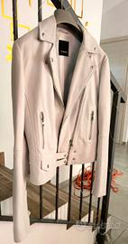 Giacca biker Pinko da donna in pelle color avorio. Modello corto con zip asimmetrica, tasche con chiusura metallica e dettagli iconici stile motociclista. Linea femminile e moderna, interno foderato. Perfetta per outfit casual o eleganti. Ottime condizioni generali. Prezzo trattabile.