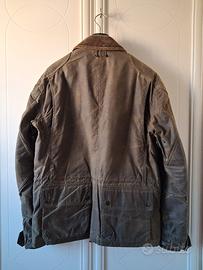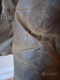 Giacca modello biker Ralph Lauren, taglia 48, color verde oliva, in ottime condizioni. E' presente un piccolo foro segnalato in foto. Modello raro. Spalle 48, lunghezza 76 cm, petto 55 cm, manica esterna 66 cm. Completo di cintura originale